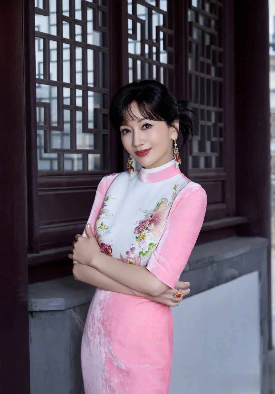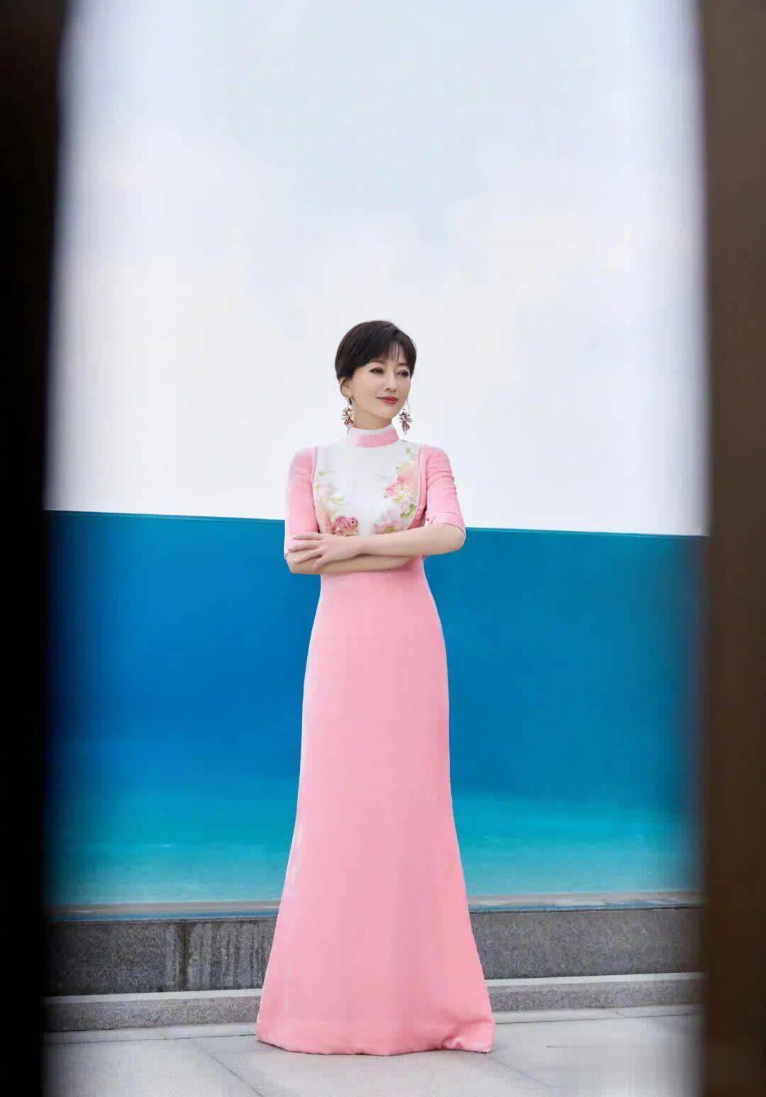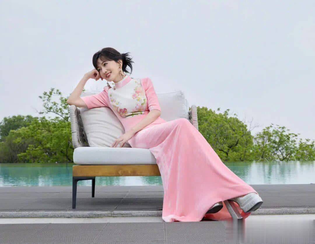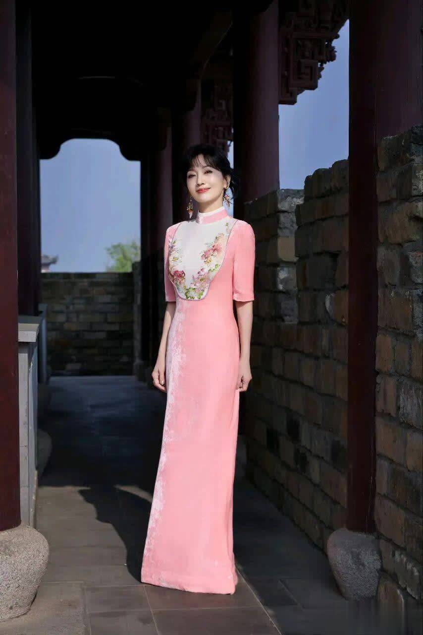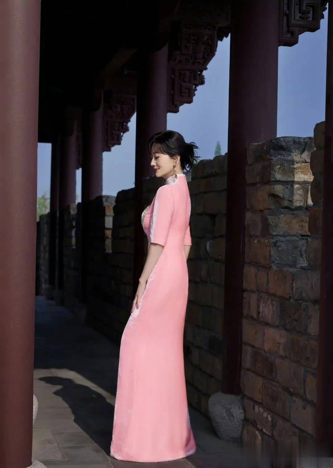 赵雅芝的东方气质,在穿旗袍时展现得淋漓尽致。这套粉色改良旗袍,更是将她的温婉与优雅推到了极致。