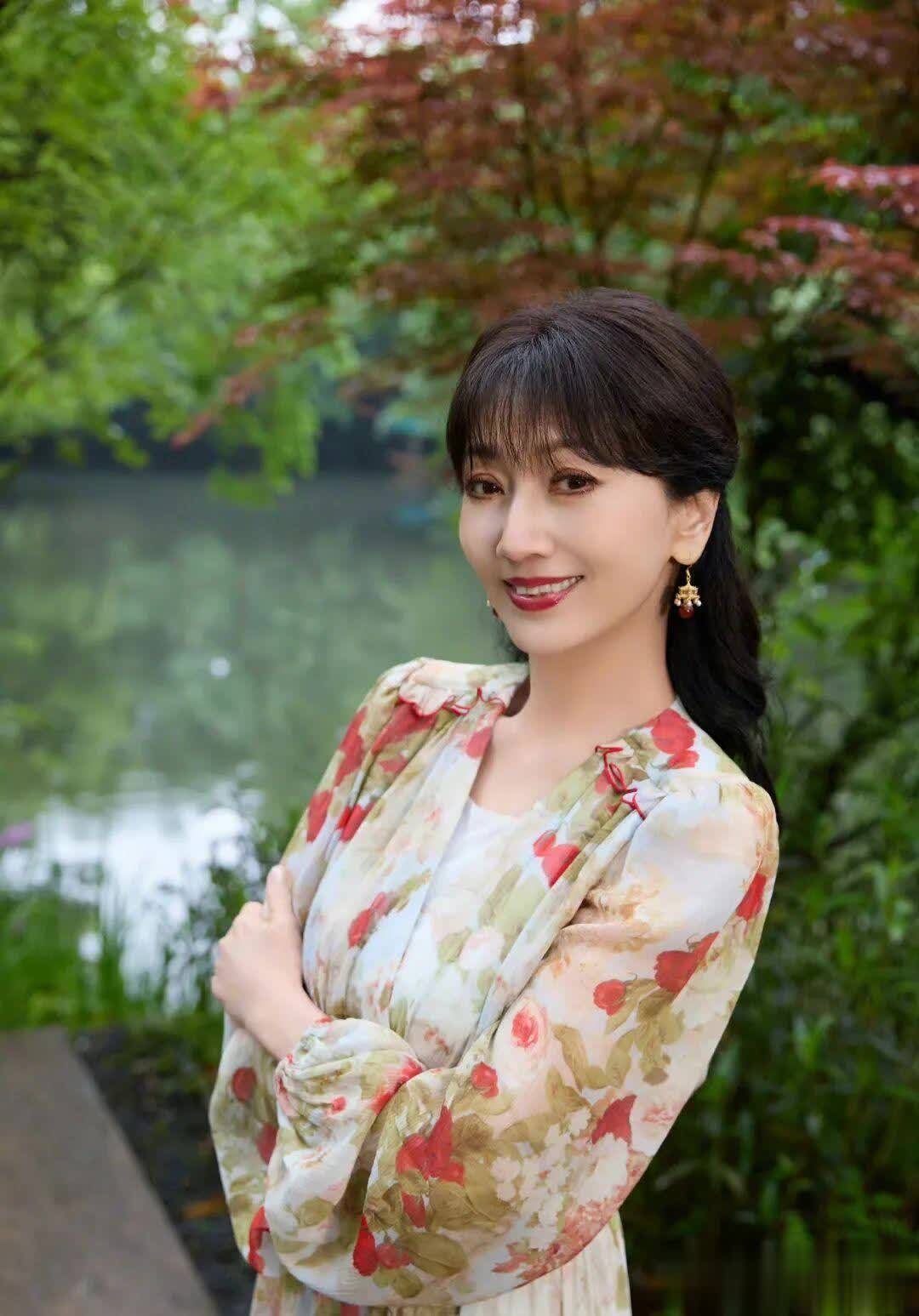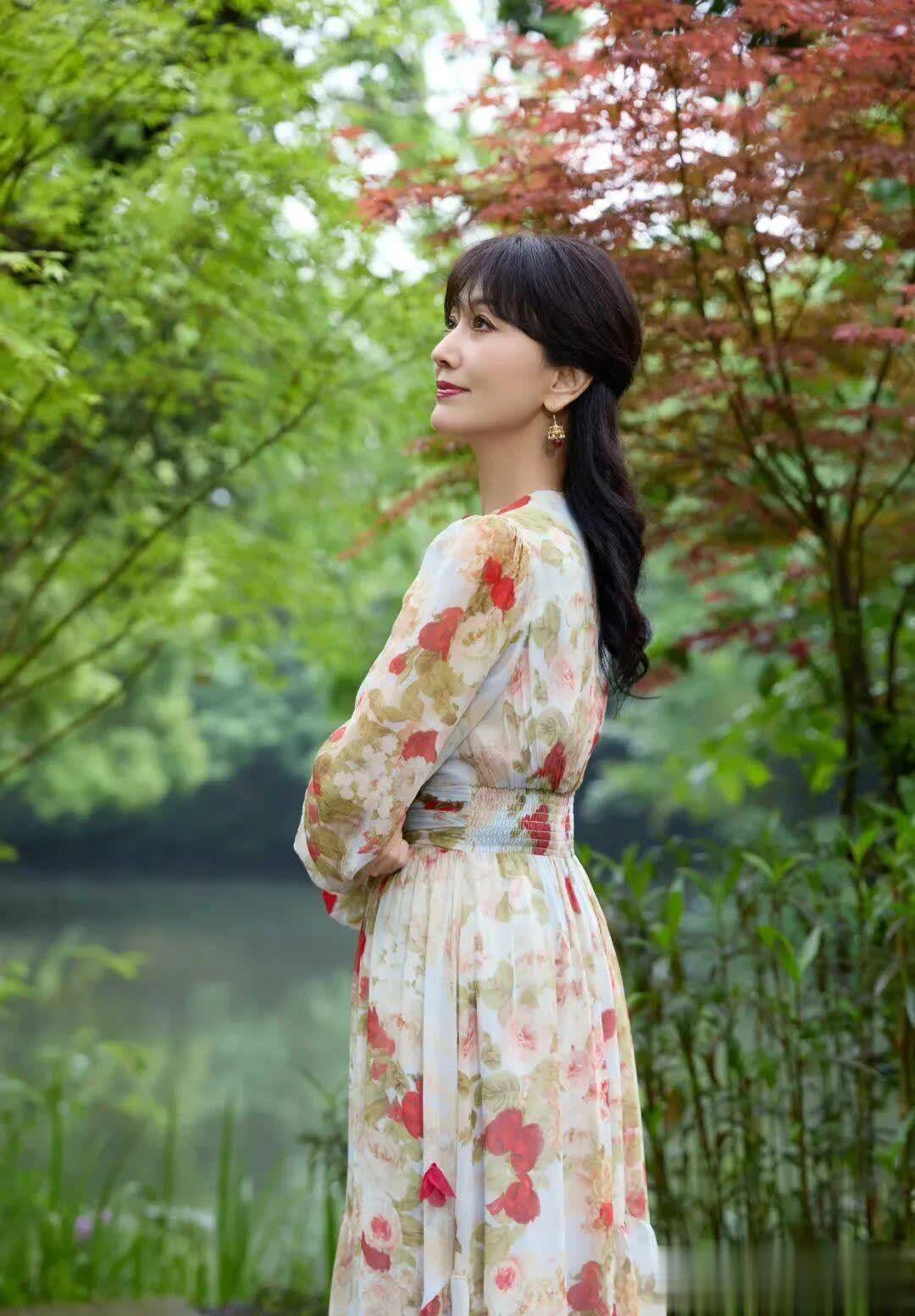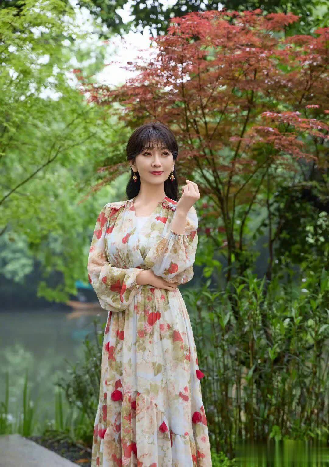 春天怎能少了一条碎花裙?赵雅芝这套江南园林穿搭,完美示范了中年女性如何穿碎花裙不土气。